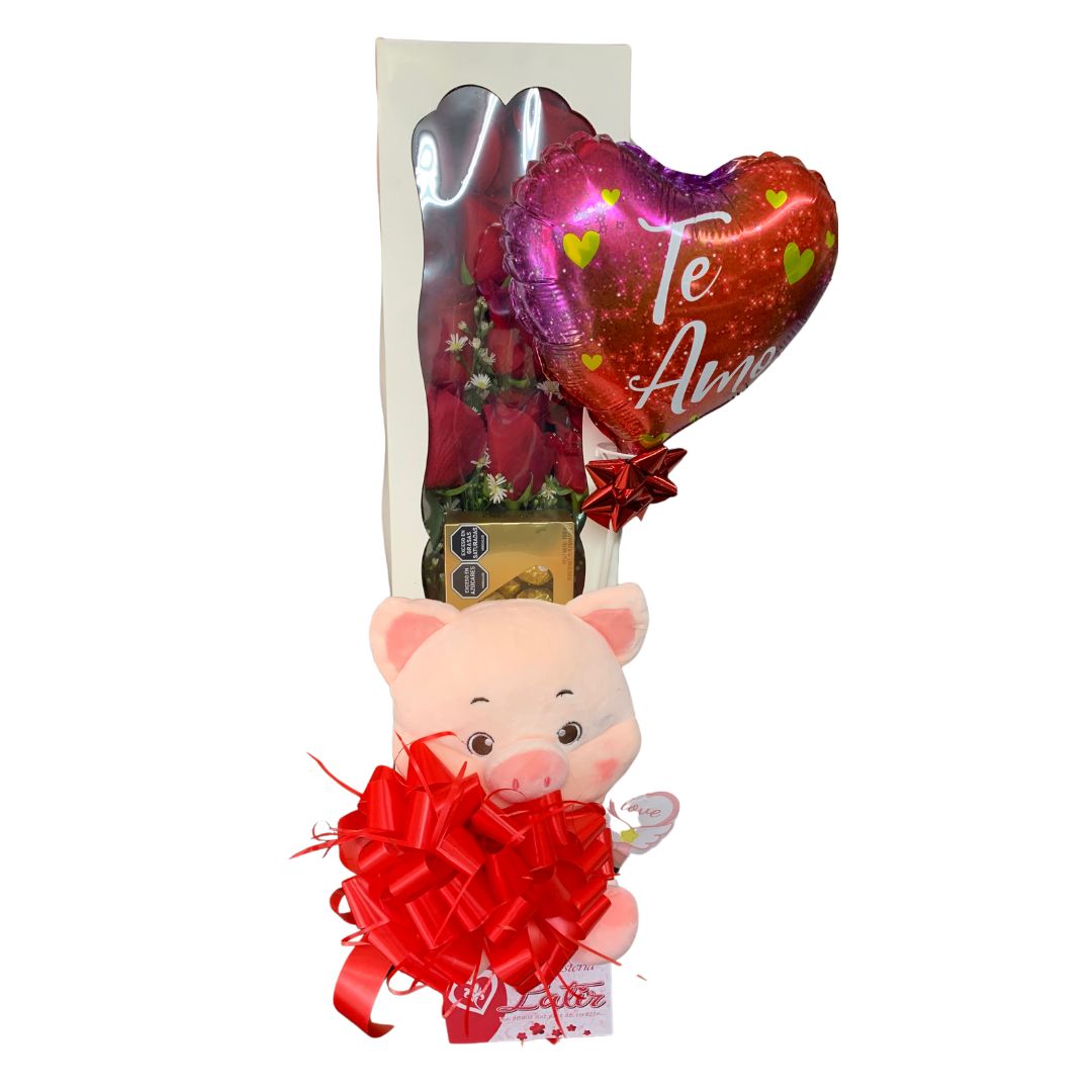 La «Caja Encanto Total» es un regalo listo para enamorar o alegrar el día de alguien especial. Una hermosa presentación en caja que combina la calidez de las rosas con la ternura de un peluche, el sabor irresistible de los chocolates Ferrero Rocher y el brillo festivo de un globo metalizado. Todo en un solo detalle que encanta a primera vista. Incluye: