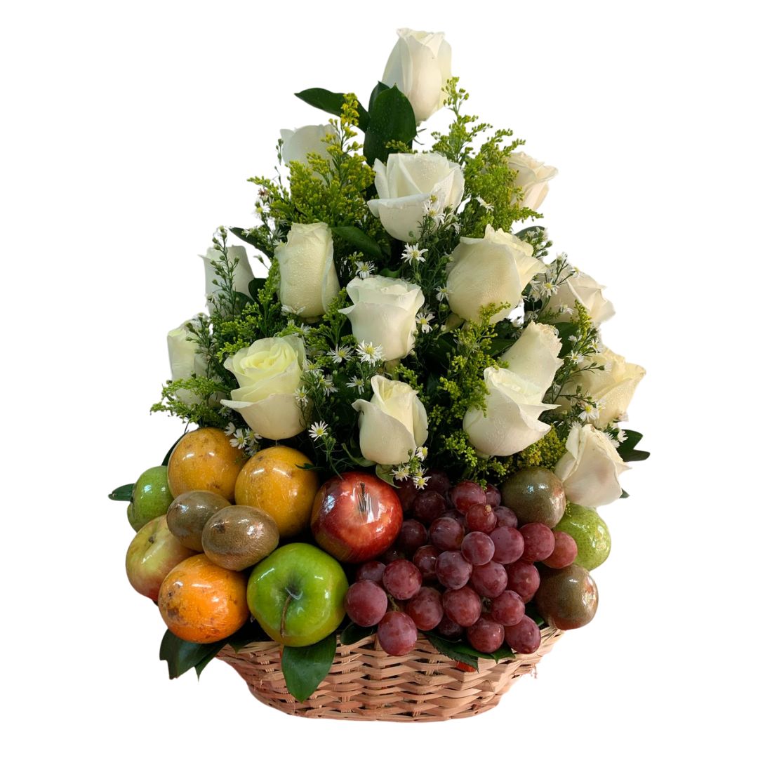 Canasta Frutero con Rosas Blancas