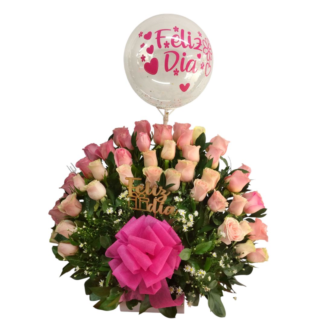 Sorprende y emociona con nuestro Abanico de Rosas Rosadas con Globo Burbuja, una creación floral que combina la elegancia clásica de las rosas con un toque moderno y divertido gracias a su globo burbuja personalizable.