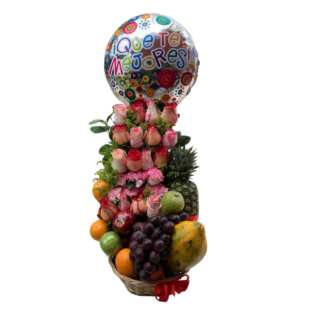 El «Frutero Rosado» es un detalle floral diseñado para transmitir dulzura y calidez. Combina la suavidad de las rosas rosadas frescas con un elegante globo metalizado decorativo, todo presentado en una base tipo frutero que aporta volumen y distinción. Ideal para regalar en cumpleaños, agradecimientos o simplemente para alegrar el día de alguien especial. Incluye: